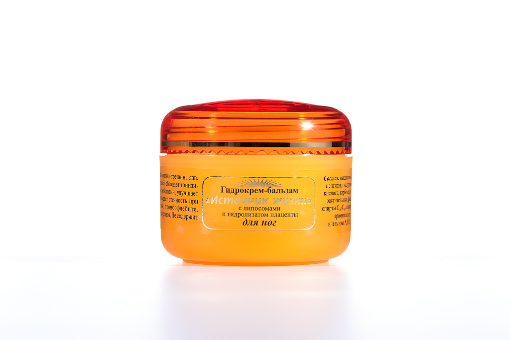 Самочувствие наше во многом зависит от того, в каком состоянии находятся ноги, поэтому они нуждаются в ежедневном и столь же тщательном уходе, как и лицо. Гидрокрем для ног включает в себя гидролизат плаценты (высокоактивные пептиды, мукополисахариды, аминокислоты, гиалуроновую, нуклеиновые кислоты), карбомер, оливковое масло, лецитин, витамины A, D, E, F, противогрибковые компоненты, микроэлементы, ароматизатор. Не содержит ланолина.