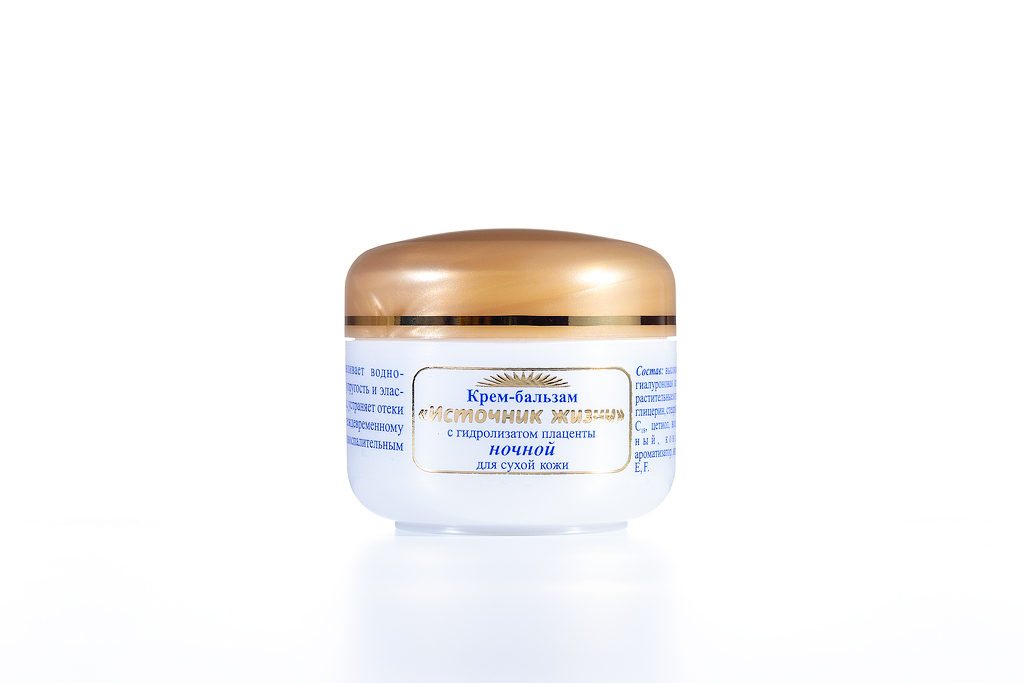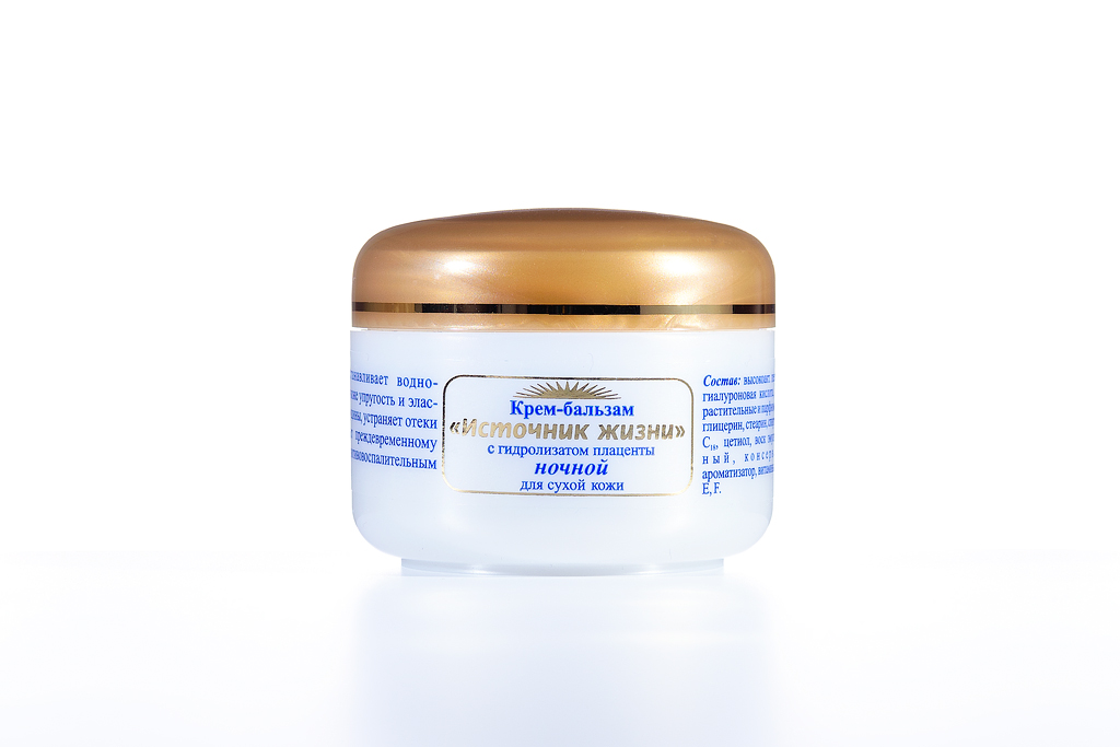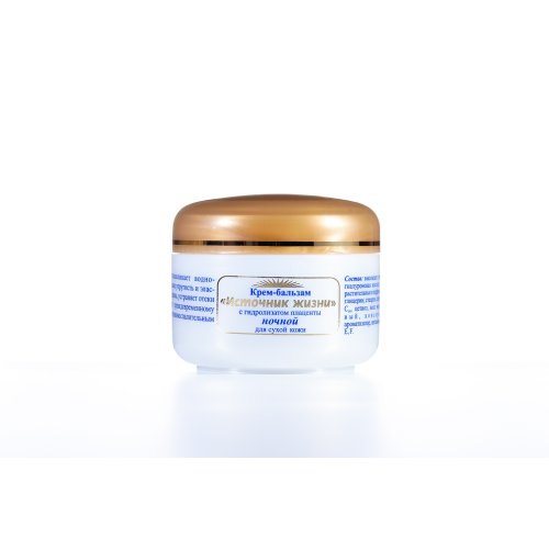 Нежный крем-бальзам, специально созданный для ухода за тонкой, сухой, чувствительной и поврежденной кожей, содержит гидролизат плаценты (высокоактивные пептиды, мукополисахариды, аминокислоты, гиалуроновую, нуклеиновые кислоты), растительные масла и экстракты, глицерин, стеарин, цетиол, витамины A,D,E,F, микроэлементы, ароматизатор.